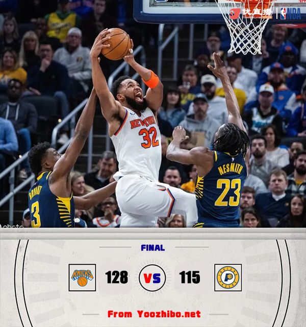 24直播网讯 2月12日讯 NBA常规赛,尼克斯对阵步行者,两队上场比赛都遭遇失利,尼克斯惨败给凯尔特人,步行者不敌湖人,特纳继续缺阵。开场后两队就打得十分胶着,在第一节后半段西亚卡姆和马瑟林联手打出一波小高潮取得领先,不过尼克斯立马回敬一波10-2以1分优势结束首节。第二节上来步行者率先打出攻势,唐斯带队强势回击,唐斯状态火热单节轰下15分,麦克布莱德在三分线外也总能给予支援。易边再战,布伦森受犯规困扰早早下场休息,唐斯依旧打得十分坚决,哈特也站出来频频拿分帮助尼克斯将分差拉大到两位数,步行者多点开花追赶比分。最后一节唐斯和哈特帮助球队始终掌控场上局面,步行者未能缩小分差,最终尼克斯击败步行者。