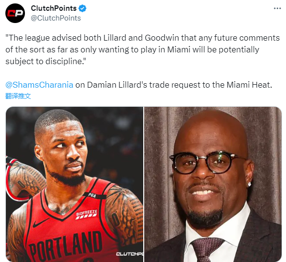 利拉德只想加盟热火,这已经不是什么秘密,对于这样的情况,联盟已经介入,据名记报道,联盟劝告利拉德和古德温(他的经纪人)未来别再说他只想为热火打球的言论,如果这些言论继续下去,他们都会受到纪律处分。