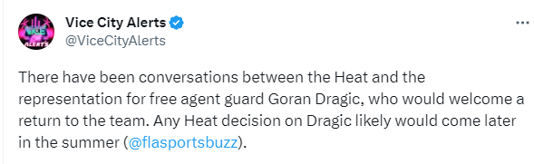 Barry Jackson报道,热火和自由球员后卫德拉季奇的经纪人进行了对话,后者有望重返热火,热火可能会在今年夏天晚些时候做出最终的决定。