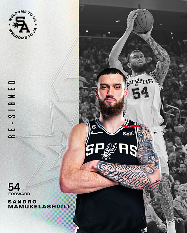 马刺官宣签回马穆克拉什维利,据悉他们签下1年200万美元的续约合同。