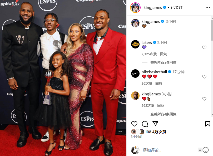 无论如何,目前布朗尼已经出院并回家休息,他的健康重于一切;布朗尼出院后詹姆斯公开致谢,还晒出一家五口的合影,很明显,詹姆斯已经彻底放心了。