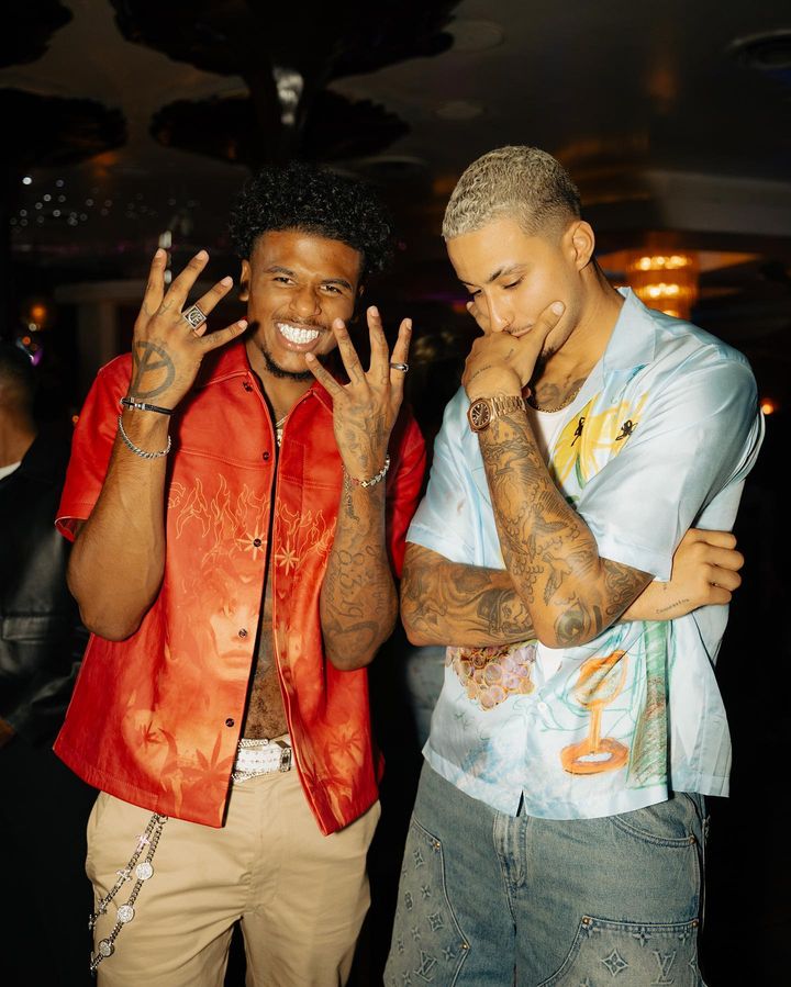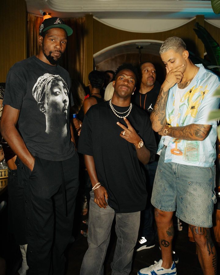 库兹马在社交媒体上晒出派对合影,太阳球星杜兰特、火箭新星杰伦-格林和奇才新援乔丹-普尔都到场助阵;杜兰特戴着棒球帽,与库兹马合影时一脸严肃;杰伦-格林与库兹马合影时表情抢镜;库兹马还晒与新队友普尔的合影,配文写道:带普尔参加派对。