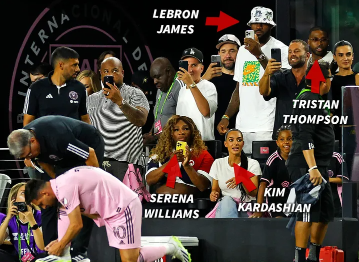 在此前梅西的迈阿密国际生涯首秀中,包括詹姆斯、小威、金-卡戴珊和TT(特里斯坦-汤普森)在内的多位名人均来到现场观赛,梅西在最后时刻凭借任意球绝杀点燃球馆。