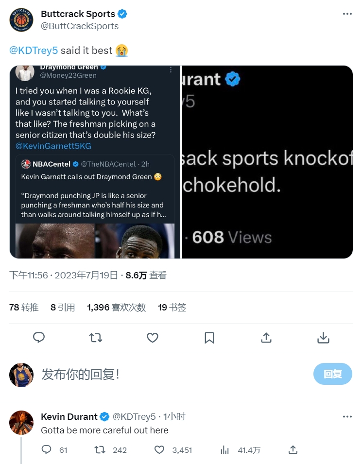 杜兰特则是现身评论区回复:上网冲浪得小心呐。