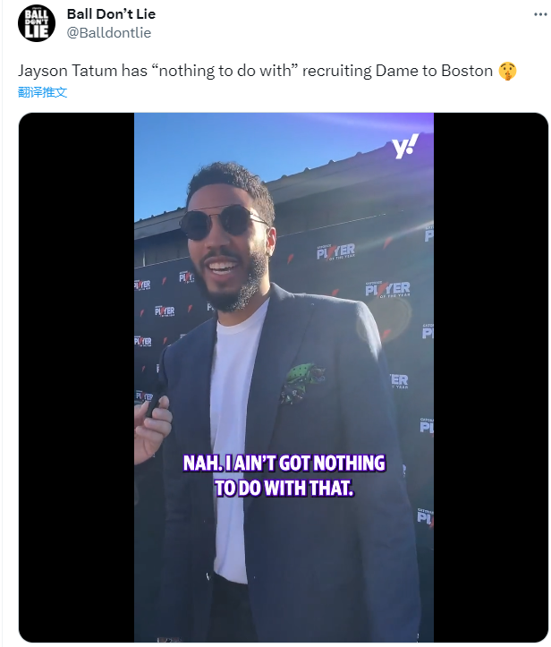 近日塔图姆出席活动时,记者问道:最近关于利拉德有很多流言,你有没有跟他谈过,然后去做一些什么来让他来到波士顿跟你一起打球?