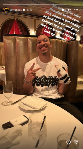 据凯尔特人队记Adam Himmelsbach报道,上周塔图姆与其好友、前绿军球员格兰特-威廉姆斯在拉斯维加斯一家豪华餐厅共进晚餐——塔图姆对格威打趣:当我们对阵独行侠的时候,我会打得你落花流水。