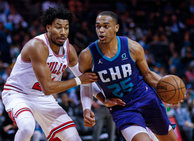 从数据呈现来看,PJ·华盛顿似乎更加出色。因此在自由市场开启之时,成为受限自由球员的PJ·华盛顿甚至想要寻求一份4年超过8000万美元的合同。这显然吓跑了他的追求者。华盛顿上赛季在三球受伤的阶段,曾短暂成为黄蜂的头号选择,也一度交出连续20+的表现。但后来,华盛顿发挥渐趋平淡,这也让黄蜂意识到,他无法独当一面。因此在休赛期,黄蜂只给华盛顿提供了一份资质报价。