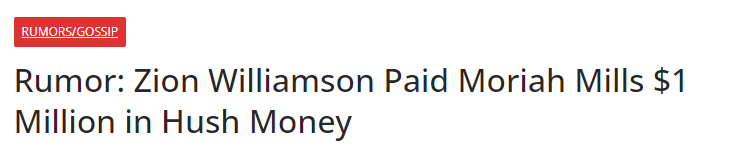 今夏锡安在场外惹上大麻烦,陷入桃色风波之中被指出轨,成人女星Moriah Mills晒出与锡安发生关系的证据截图以及自称怀了锡安的孩子,据美媒最新爆料,锡安已经和Moriah Mills达成了协议,支付了100万美元的封口费,若确定孩子是锡安的,锡安将支付抚养费。
