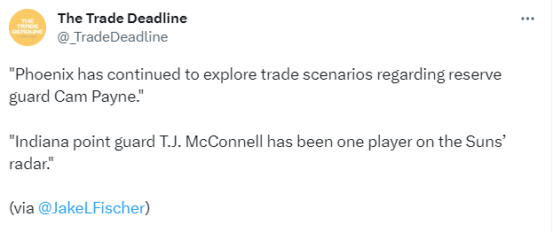 今夏太阳把佩恩最后一年的600万美元的合同转为完全保障合同,可他新赛季能够留在太阳吗?据名记报道,太阳仍在积极兜售佩恩,并且有意步行者球员TJ-麦康奈尔。