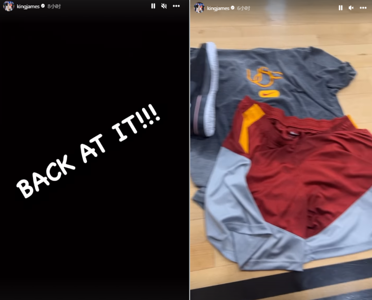 当地时间凌晨4点47分,詹姆斯起床前往球馆训练,配上一直鸟和一条蛇的表情,寓意“早起的鸟儿有虫吃”;大概过了2小时,詹姆斯更新内容并写道:回来了。