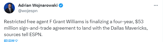 来源:24直播网07-06 13:0224直播网讯07月06日,据名记shams报道,独行侠、凯尔特人和马刺达成三方交易,格兰特-威廉姆斯4年5300万美元辅佐东契奇和欧文,布洛克前往马刺,绿军获选秀权。