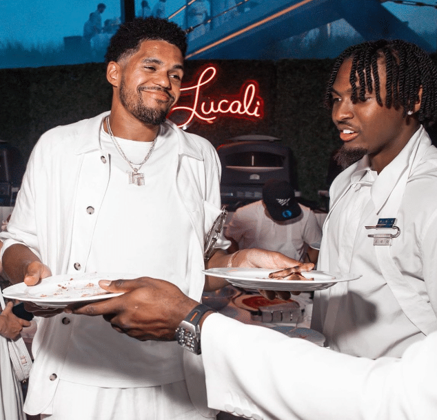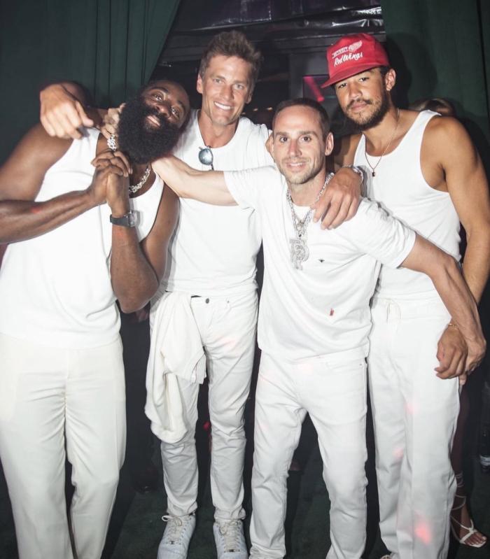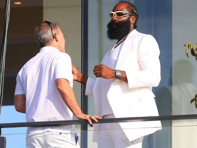有哪些NBA球员来到鲁宾的派对上?太阳球星杜兰特和布克,76人球星哈登、恩比德、哈里斯和马克西,骑士球星米切尔奇才球星库兹马,还有追梦格林、塔图姆、迈尔斯-特纳、奎克利等人;现场大腕云集,布雷迪、莱昂纳多、姆巴佩、比伯、碧昂丝以及卡戴珊家族的金-卡戴珊和肯达尔-詹娜。