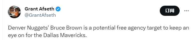 布朗已经跳出合同成为自由球员,预计联盟将有多支球队用高薪追求他,22-23赛季,布朗为掘金出战80场常规赛,场均拿到11.5分4.1篮板3.4助攻1.1抢断,季后赛替补出战20场,场均贡献12分4篮板1.9助攻1.1抢断,是掘金夺得队史首冠的功臣之一。