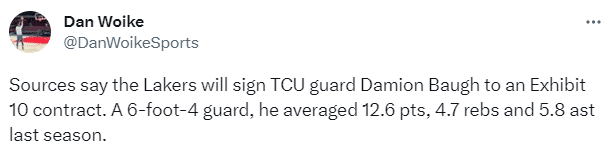 达米恩-鲍出生于2000年4月,今年22岁,身高193厘米体重88公斤,此前曾为湖人试训;落选后和湖人签下一份Exhibit-10合同,将代替湖人出战夏季联赛。