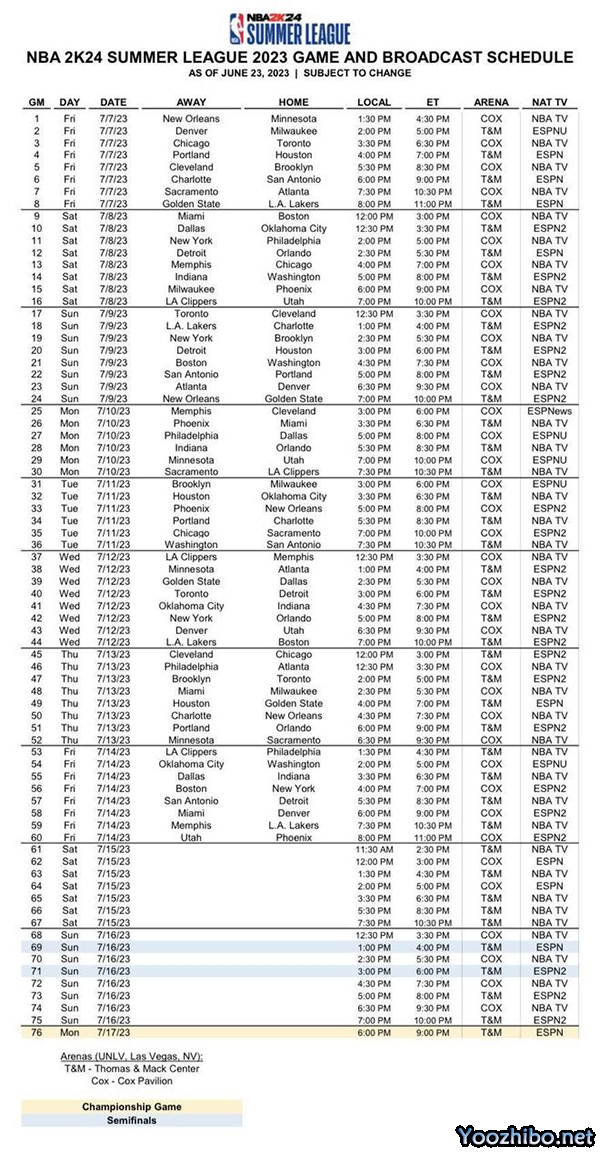 2023-24赛季NBA夏季联赛直播时间安排一览
