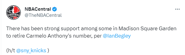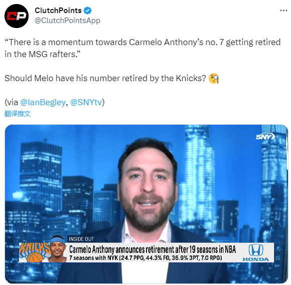 尼克斯队内已经有了退役安东尼球衣的势头,好像只差老板点头同意。