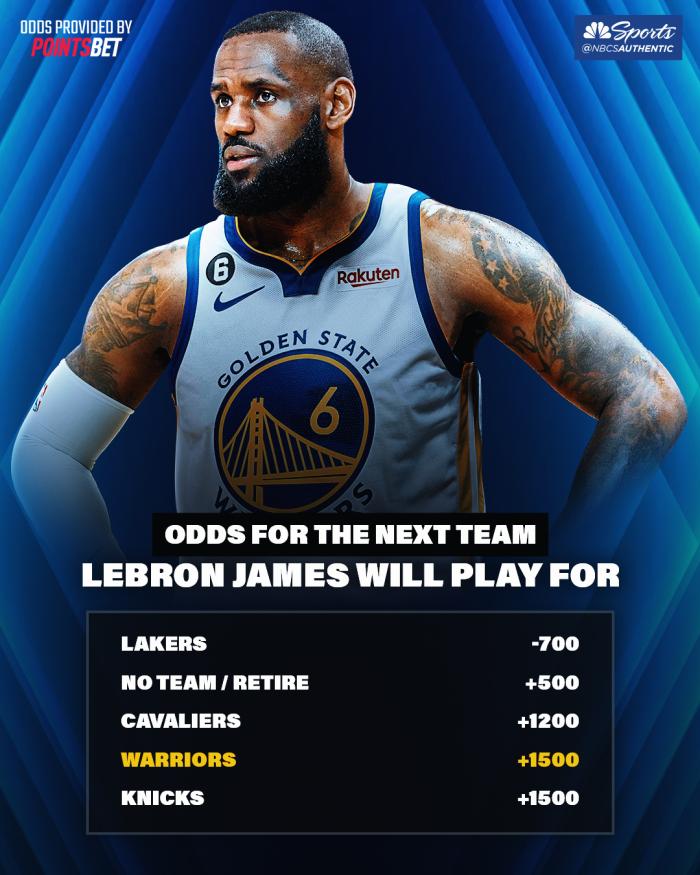 詹姆斯正在考虑他的未来,名记凯文-奥康纳希望詹姆斯加盟勇士,他认为詹姆斯和库里是天作之合,尤其是到了生涯最后阶段;该记者还表示格林可能出面招募詹姆斯,两人的关系非常好并且同属于一个经纪人。