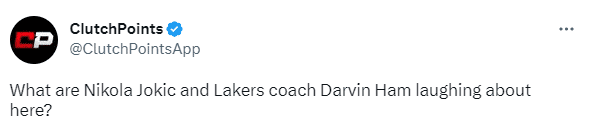 约基奇和哈姆笑什么呢?西决G1正式开打之前,哈姆曾调侃绑架约基奇,当时他表示:我们针对约基奇的战术安排是在他家门外逮到他,然后绑架他。