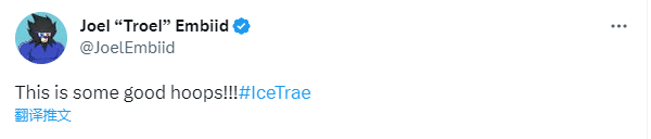 特雷-杨绝杀冲上推特热搜引热议,76人球星恩比德更推称赞特雷-杨表现,发推写道:这些得分太帅了!!!IceTrae!