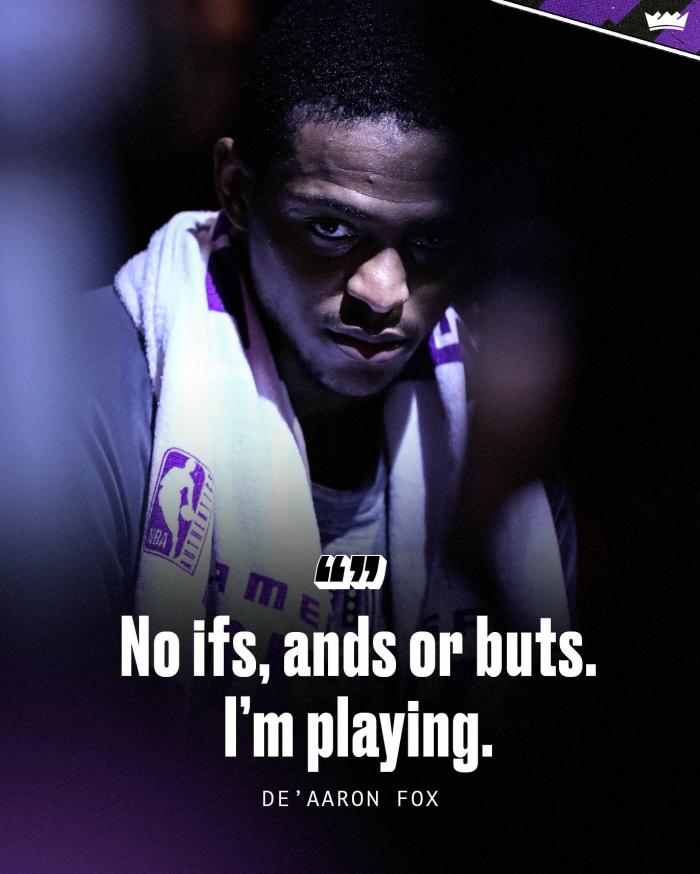 此前国王把福克斯列为大概率缺席G5,今日训练后福克斯亲自宣布他会参加G5,公开表示:没有如果,也没有但是,我会打的。