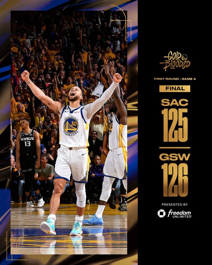 国王追到1分,库里关键球打铁不中,最后10.5秒国王有绝杀机会,暂停回来,库里先是卖力盯防福克斯,然后补防干扰巴恩斯,后者错失绝杀三分,最终勇士1分险胜逃出生天;勇士赢球后,库里和格林激情庆祝,汤普森也十分激动。