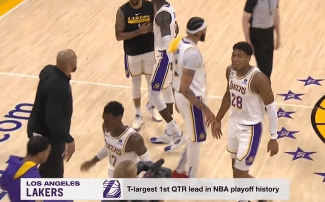 来源:24直播网04-23 12:1824直播网讯04月23日,NBA季后赛湖人主场迎战灰熊。此役首节,湖人打出了令人难以置信的比分。他们单节35-9领先灰熊,几乎只用一节,就让本场比赛失去了悬念。根据统计,26分的分差也追平NBA季后赛历史上,首节比赛的最大分差。赛前曾大放厥词的狄龙布鲁克斯,此役遭遇漫天嘘声,首节4中0没有得分。坐在替补席上,狄龙的表情也非常尴尬。