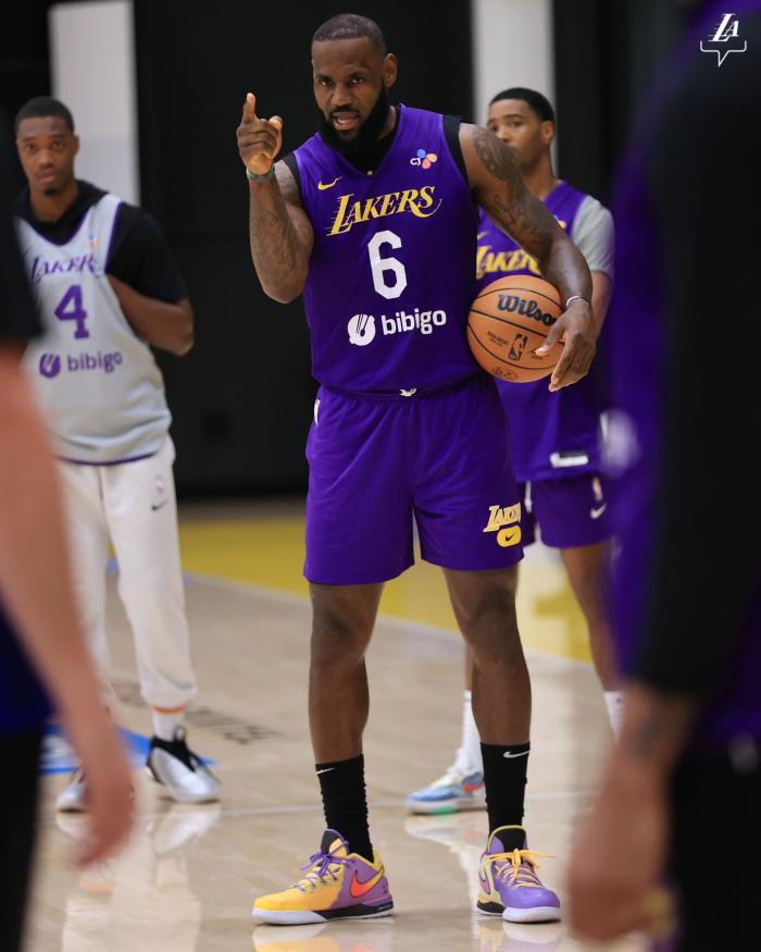 湖人备战G3:詹皇表情凶狠指导队友 球迷请求他面对狄龙轰40分