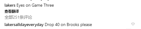 此前狄龙嘲讽詹姆斯太老了,质疑詹姆斯拿不到40分;在湖人官方社媒评论区,湖人球迷希望詹姆斯下一场拿到40分:请在狄龙头上轰下40分。