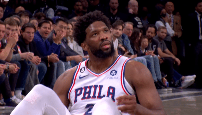76人和篮网G3一战,恩比德多次倒地,第二节恩比德持球进攻,才碰到奥尼尔就摔倒,一碰就倒疑似假摔,如此摔倒又引热议,篮网主场球迷集体狂嘘恩比德,美媒恶搞嘲讽他。