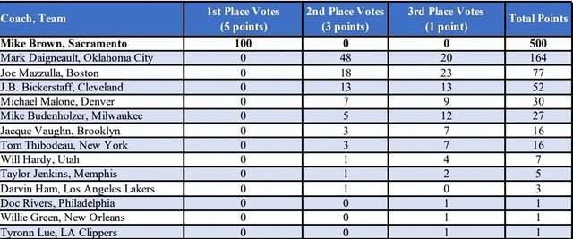 正如他最后的得票情况一样,迈克·布朗拿下年度最佳教练,是本赛季最没有悬念的事情。包括勇士科尔、湖人巨星詹姆斯等几乎所有人在内,都将迈克·布朗视作是本赛季NBA最佳主帅的唯一人选。