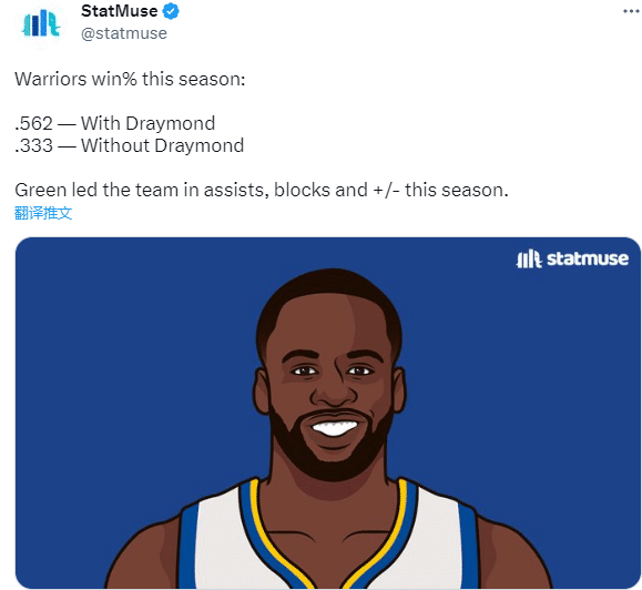 格林助攻,盖帽,正负值,都是全队第一,有格林时勇士队胜率56.2%,没有格林时勇士胜率仅33.3%;很明显,格林对球队的攻防体系都十分重要,根据赛程,双方将于4月21日在大通中心开打G3,本赛季勇士主场战绩为33胜8负,目前勇士大比分0-2落后。