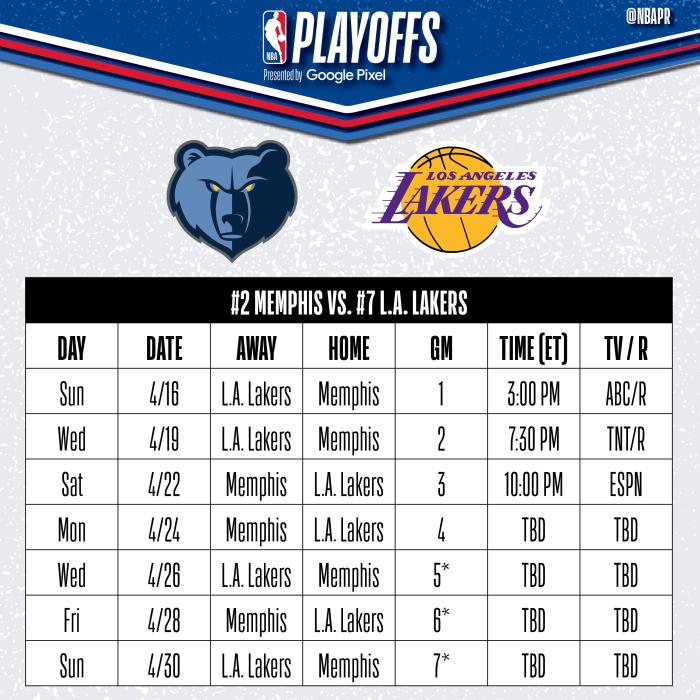 湖人和灰熊系列赛赛程详情如下(均为北京时间):