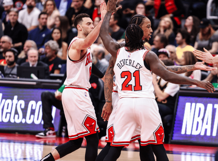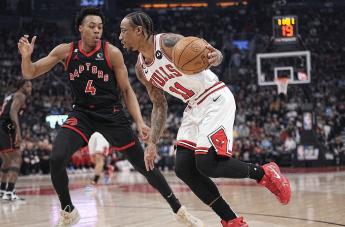 末节,公牛10-6继续追分,德罗赞防守大帽阿奴诺比,拉文轰进追分三分直接打停猛龙;暂停回来公牛继续缩小分差,两队僵持对决;关键时刻,拉文对攻西亚卡姆,德罗赞跟进暴扣助公牛领先3分,范乔丹关键三分,拉文和德罗赞突破上篮,双方错失关键三分,德罗赞关键两罚一中,西卡暴扣,拉文造犯规两罚全中,西卡关键三罚一中,德罗赞女儿仍旧尖叫干扰,最终公牛逆转取胜。