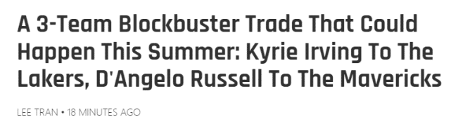 欧文拉塞尔互换东家双赢?美媒晒3方交易方案:两大后卫驰援詹眉