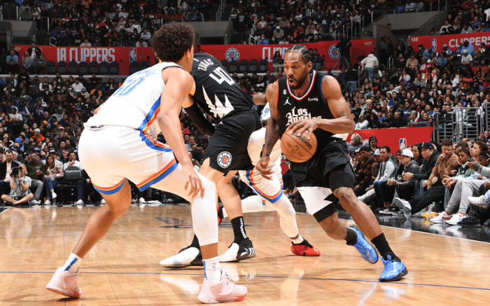 第二节,快船进攻明显下滑,小卡遭遇雷霆队的疯狂夹击,无法获得出手机会;雷霆防守凑效,小卡单节0出手0分,快船全队单节仅拿到18分。