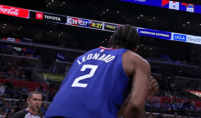 第二节4分24秒,小卡持球强突上篮,明显被犯规,裁判却视而不见,对此快船巨星小卡十分不满,冲着裁判抱怨吃到技术犯规,随后曼恩为小卡鸣不平,抱怨以及摊手,连续吃到两次技犯直接被驱逐离场;返回更衣室途中,曼恩弄掉篮球泄愤。