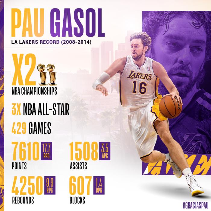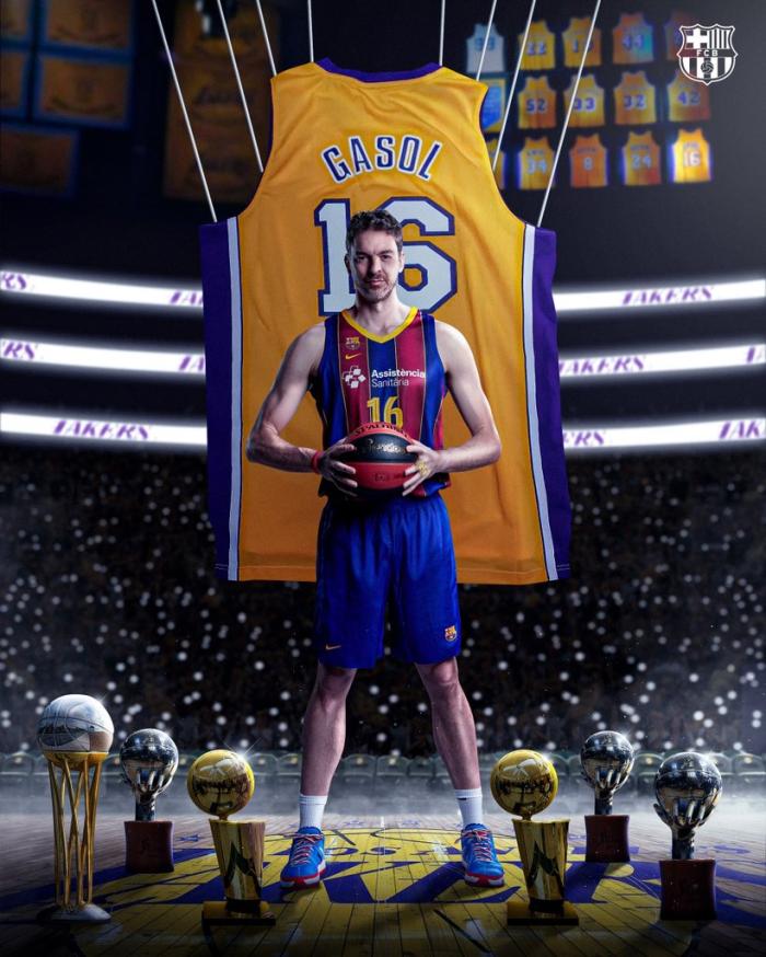 湖人官方多次祝贺加索尔,巴塞罗那篮球俱乐部也祝贺加索尔。
