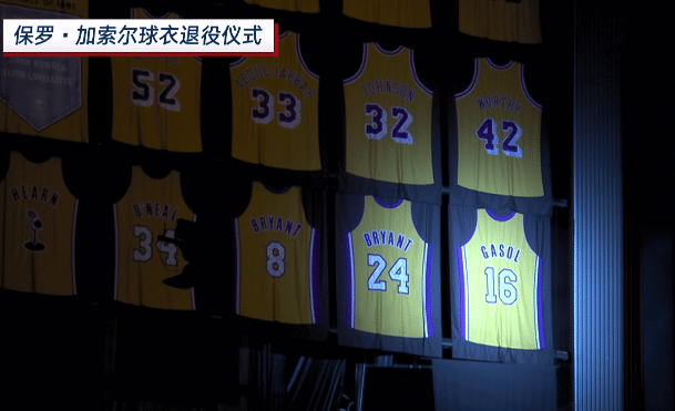 湖人正式退役加索尔球衣:16号紧挨科比太催泪 家嫂落泪全场高呼科比