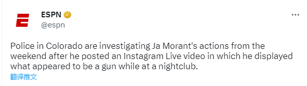 据ESPN报道,科罗拉多当地警方已经介入调查莫兰特持枪事件,警方表示,有关部门正在调查莫兰特是否违反枪支有关法律规定;根据科罗拉多当地法律规定,饮酒后持有枪械为违法行为。