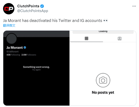 被禁赛后,莫兰特注销了个人的推特和Ins社交媒体账号。