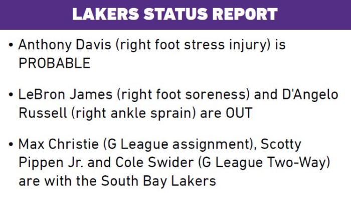 拉塞尔已经参加了球队合练,但湖人不想操之过急,而明天对阵卫冕冠军勇士,拉塞尔因伤继续休战,因脚踝扭伤连续缺席5场比赛。