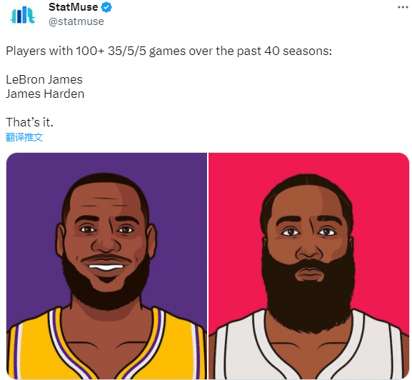 比赛还剩17.2秒,哈登已经累得瘫坐在替补席,末节打满12分钟,全场出战39分钟,轰下38+准三双带队取胜;哈登创纪录,生涯第100次单场轰下35+5+5的数据,比肩詹姆斯成为NBA近40年仅有的两位达成如此成就的球员。
