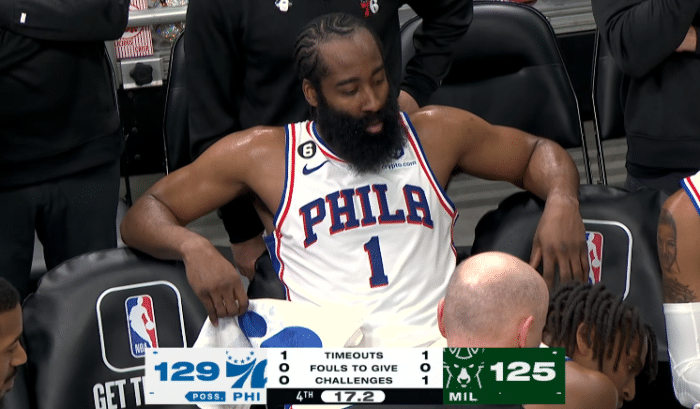 哈登第一节就早早命中2记三分,之后投篮手感有些不佳,第二节9投2中仅仅拿到7分,面对联盟第一的雄鹿,哈登的进攻欲望很强;下半场,哈登第三节仅仅出手1次,命中三分球,不过由于雄鹿第三节火力太猛,三节打完76人落后14分。