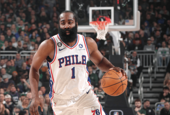哈登累瘫轰38+10+9比肩詹皇连刷纪录 送球鞋后和恩比德一起离场
