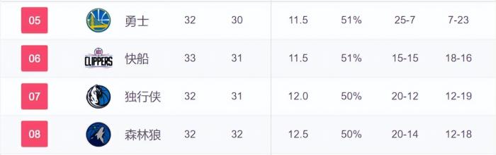 确实,快船的容错空间很小了,目前他们33胜31负,排名西部第6,距离掉进附加赛区只有0.5个胜场的差距了。
