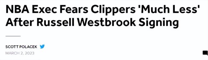 威少加盟后,快船0胜3负。一位NBA高管认为这可能不是巧合。“实际上,我现在没那么害怕他们了。”谈到签下威少的快船时,这位高管一语扎心。