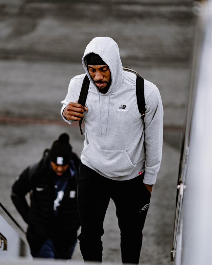 快船众将飞往客场挑战掘金,小卡身穿灰色连帽卫衣,背着双肩包并且单手抄兜,表情十分严肃;洛杉矶当地挺冷,乔治、曼恩等人都穿着羽绒服,不过小卡、威少、鲍威尔都穿的不厚;威少身穿黑色棒球服,提着行李登上飞机,走着走着,威少突然露出搞怪笑容。