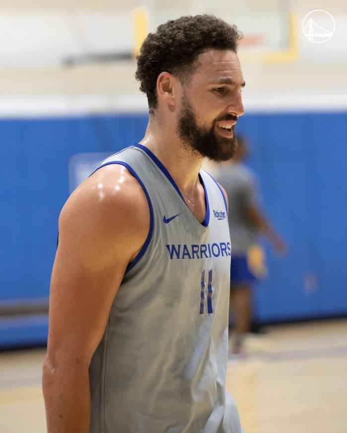 勇士积极备战湖人,克莱-汤普森、普尔训练底角三分,卢尼等球员也参加训练,他们早已练得满头大汗;勇士官推晒照并且写道:回归训练。