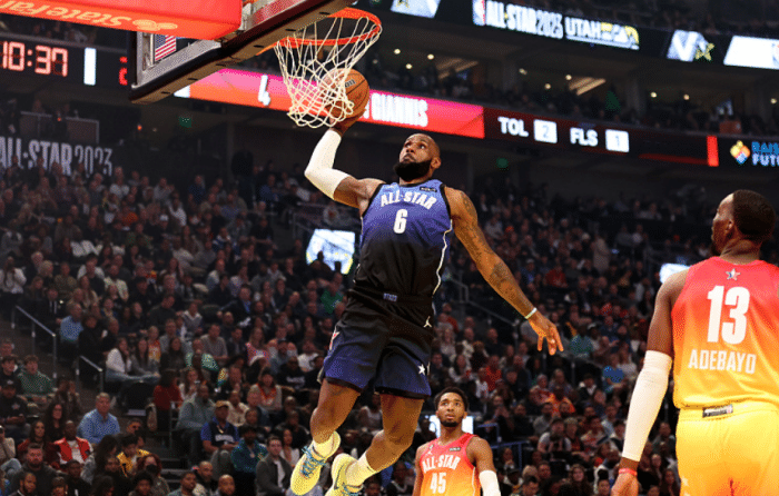 全明星正赛,字母哥上场扣篮得分,仅仅只打20秒就下场退出比赛,字母哥队第一节和詹姆斯队打成46平,塔图姆表现出色,首次多次暴扣,迎着詹姆斯暴扣以及空接砸扣,单节8投6中拿到13分。