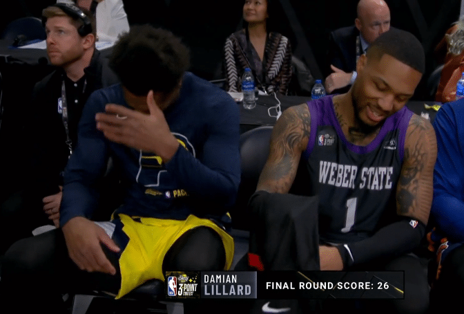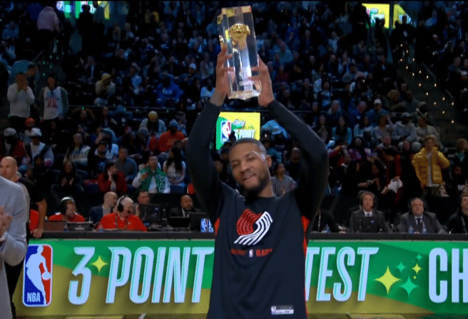 希尔德第一个出场,总共拿到25分;利拉德第二个出场,投进关键花球,总共拿到26分从而淘汰希尔德,希尔德无缘三分冠军一脸无奈;哈利伯顿仅仅17分,最终利拉德夺得三分大赛冠军,和现场众球星一起庆祝,高举奖杯庆祝。
